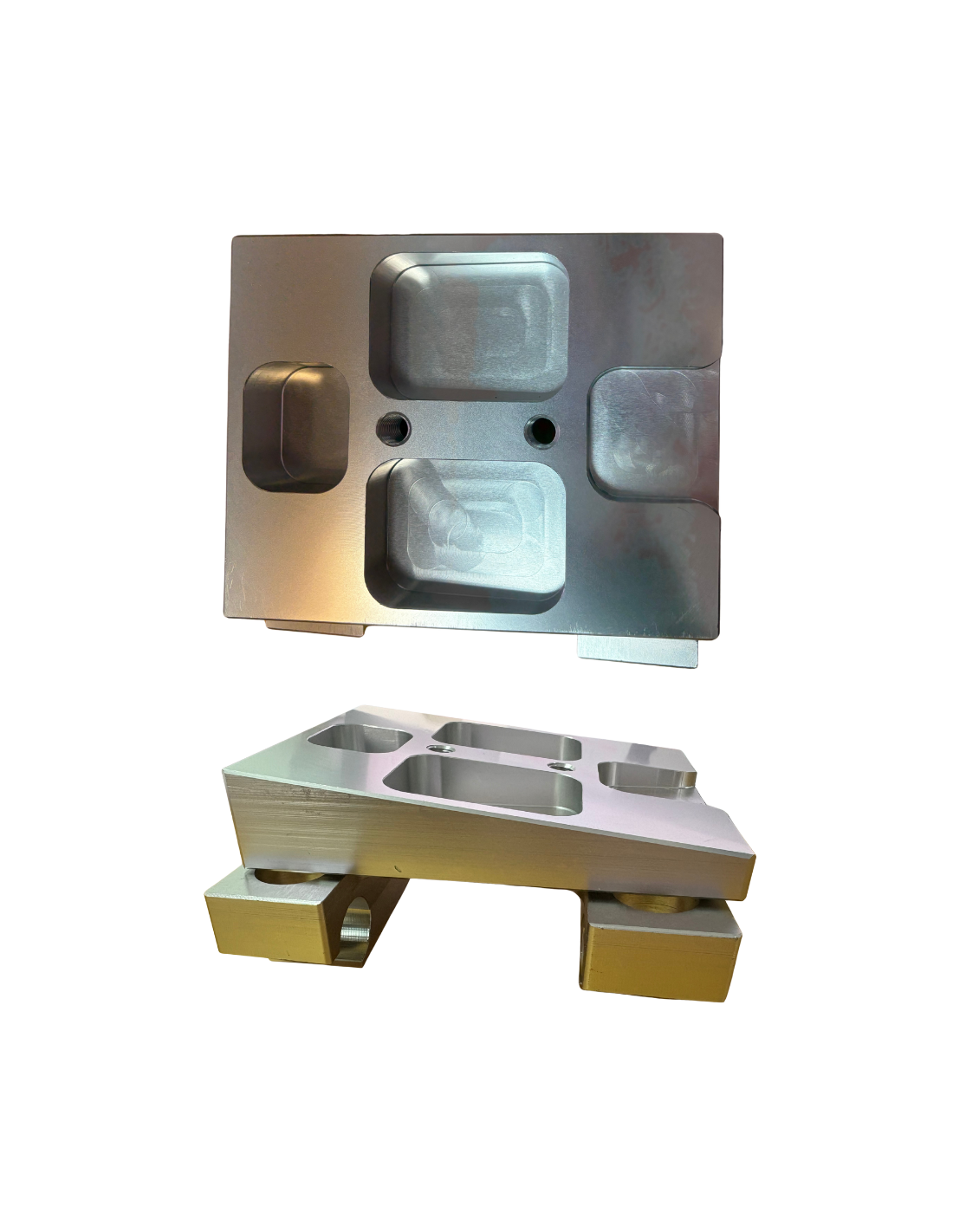 Base motor aluminio CNC doble para tubo de 28mm. Completa con bridas y tornillos. Se puede desplazar la placa superior.