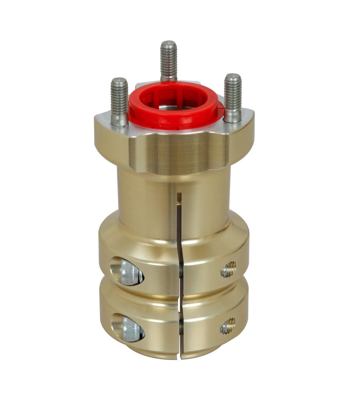 Buje trasero de aluminio anodizado para eje de 40 mm, largo 115mm, chavetero de 8mm. Espárragos incluídos.