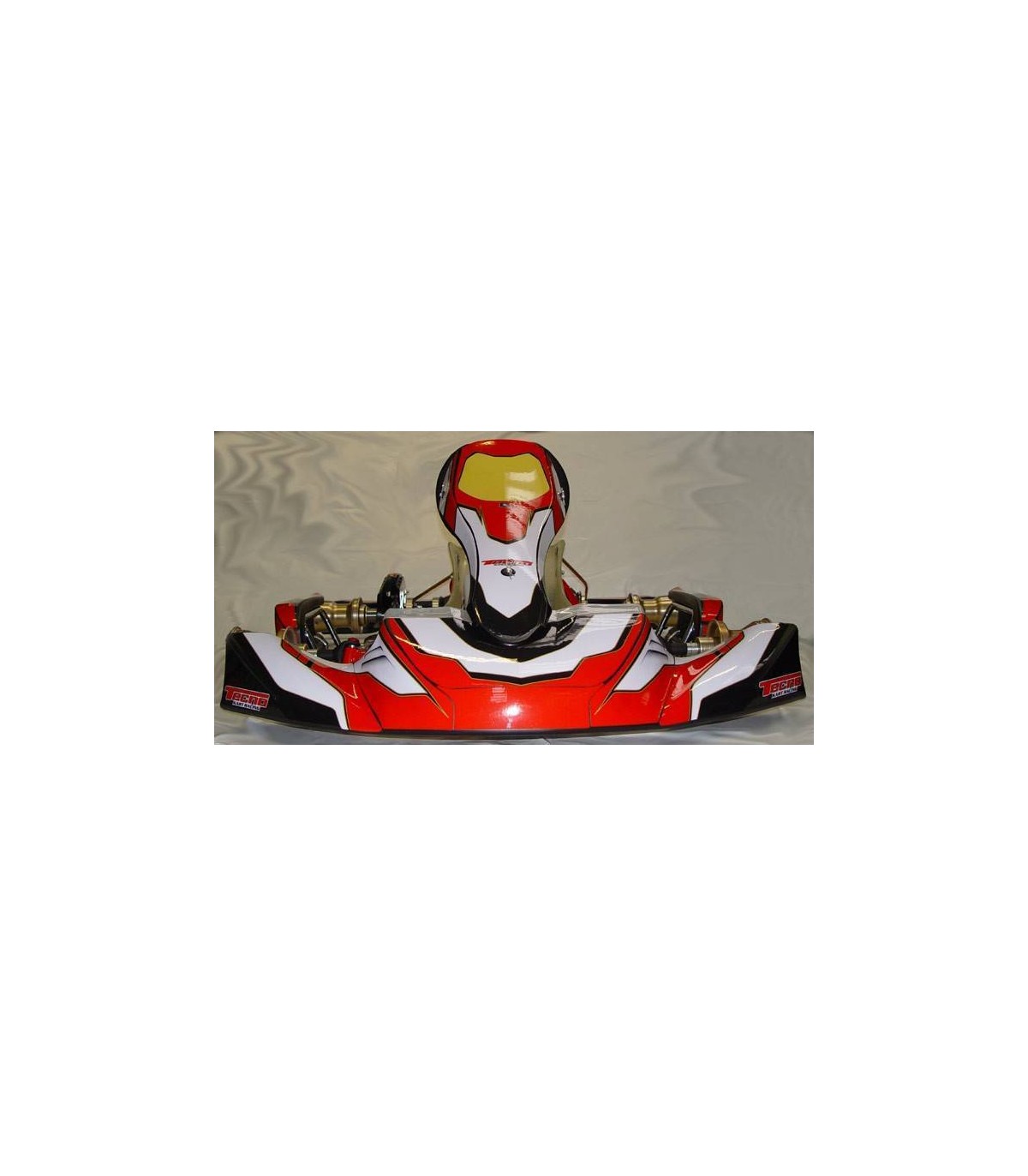 Chasis Tecno S30 para motor automático (OK, X-30, Rotax Max, etc) con freno delantero en el volante. Completo con soporte escape según motor, asiento, carrocería plástica con kit decoración. Muy completo y de máxima calidad. Componentes de magnesio.