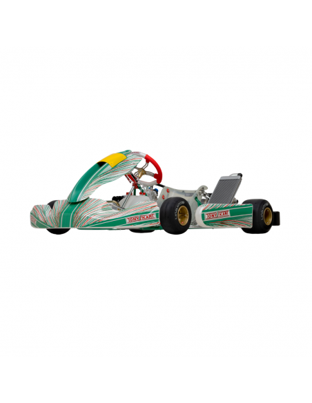 El chasis Racer representa el espíritu ganador de Tonykart. Desde 2004 las varias evoluciones de este modelo han cosechado 10 títulos mundiales (en OK Y KZ en 2022 y OKJ en 2022) y varios titulos internacionales en distintas categorías. El nuevo 401 RR sigue la senda e introduce varias novedades y desarrollo de producto. Sobre todo la nueva carrocería M10 y algunos detalles técnicos que mejoran la posición de conducción. Estéticamente, el nuevo kit de decoración y frontal son verdes. La base del projecto no ha cambiado: materiales de la más alta calidad, procesos tecnológicos avanzados y desarrollo constante basado en la información suministrada por el equipo de competición Tony Kart en las competiciones internacionales más importantes.