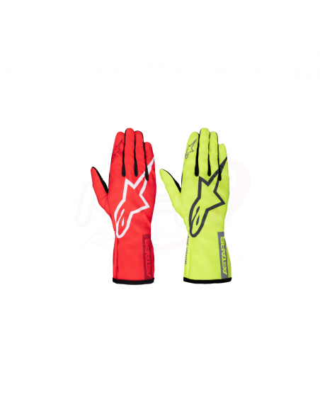 También están equipados con un diseño de puño abierto de Alpinestars con una muñeca elástica 180º para fácil entrada de la mano y un ajuste seguro, y un estampado compatible con pantalla táctil en el pulgar y los dedos índices para uso en dispositivos móviles en la pista.