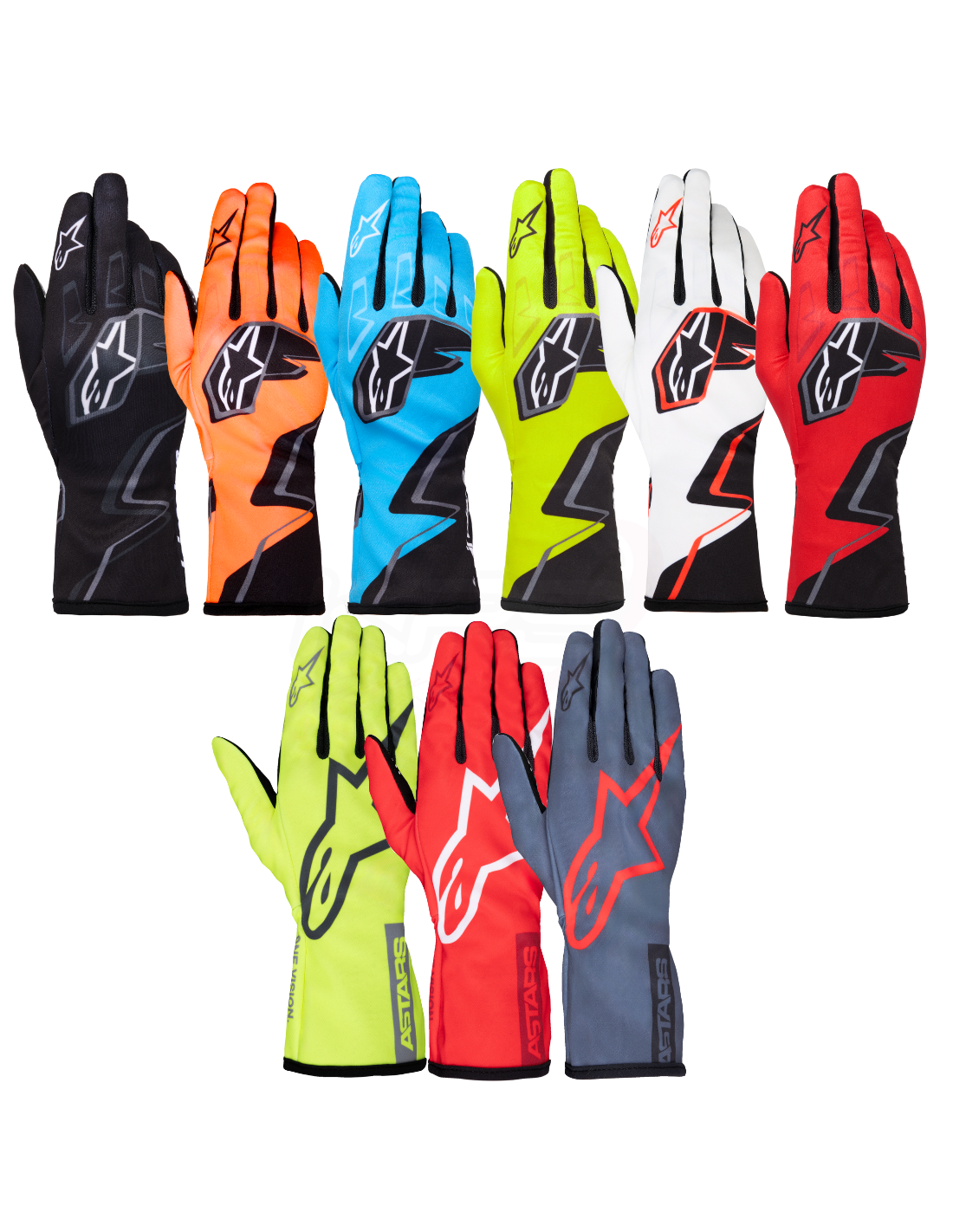 También están equipados con un diseño de puño abierto de Alpinestars con una muñeca elástica 180º para fácil entrada de la mano y un ajuste seguro, y un estampado compatible con pantalla táctil en el pulgar y los dedos índices para uso en dispositivos móviles en la pista.