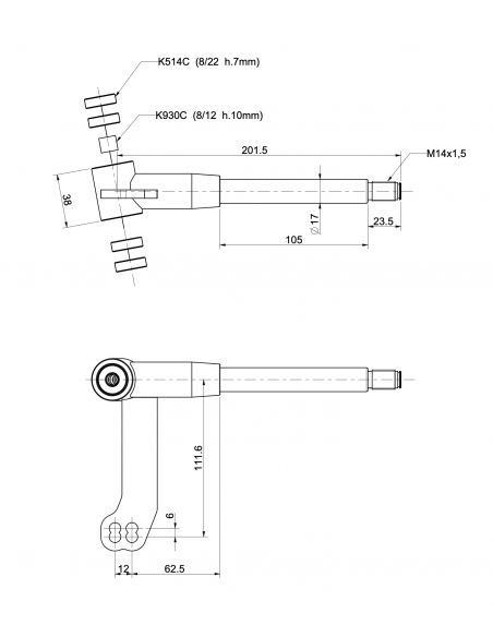 Mangueta izquierda RR larga con rodamientos 8mm.